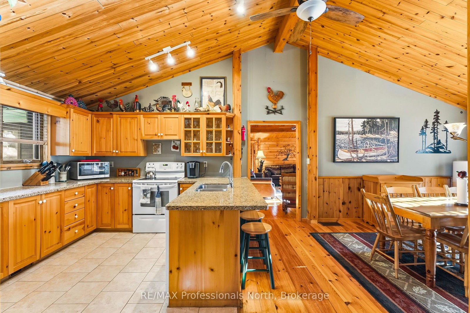 Little Kennisis Lake - Main Floor Lakeside Living at Its Best! Welcome to this stunning 4-bedroom, 2-bath bungalow offering over 2,000 sq. ft. of single-level comfort on the shores of Little Kennisis Lake. Set on 0.73 acres with 158 ft of rocky shoreline and due west exposure, this property delivers unbeatable sunsets and deep, clean swimming right off the incredible docking system (13 ft deep at the end!).Inside, enjoy the ease of main-floor living with open, light-filled spaces, pine ceilings, and two beautifully renovated bathrooms. The showpiece screened in porch features four skylights and stunning lake views - a perfect spot to unwind. The detached 3-car garage, currently used as a workshop, offers exceptional storage and hobby space. Outside, relax in the hot tub, make use of the storage shed by the water, and entertain with outdoor furniture and eight Adirondack chairs, all included.With a drilled well, municipally maintained year-round road, and a fully furnished, turnkey setup, this is lakeside living made easy. A rare combination of space, comfort, and classic Haliburton charm - ready for you to move in and start making memories.