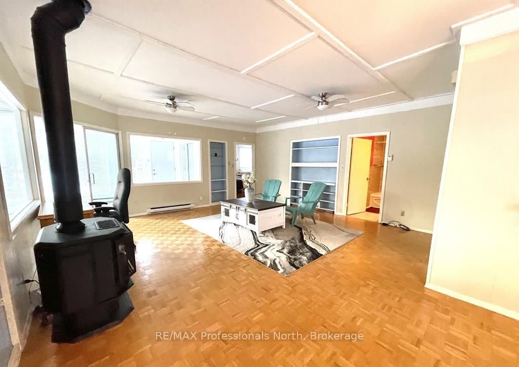 Charming & Unique Bungalow on Hunters Bay. Welcome to this well-located bungalow set on a large, level lot with mature trees and perennial gardens, just minutes from downtown Huntsville. This 3 bedroom, 2 bathroom home features an open-concept layout that's bright and inviting, offering a great opportunity to add your own style and personal touches. The home includes an attached garage with direct interior access, plus an additional carport-plenty of space for parking and storage. The unfinished basement provides extra storage or future potential. A gas fireplace adds warmth and comfort, and new laundry (washer & dryer) will be installed prior to occupancy. Some furniture may be available for purchase if desired.